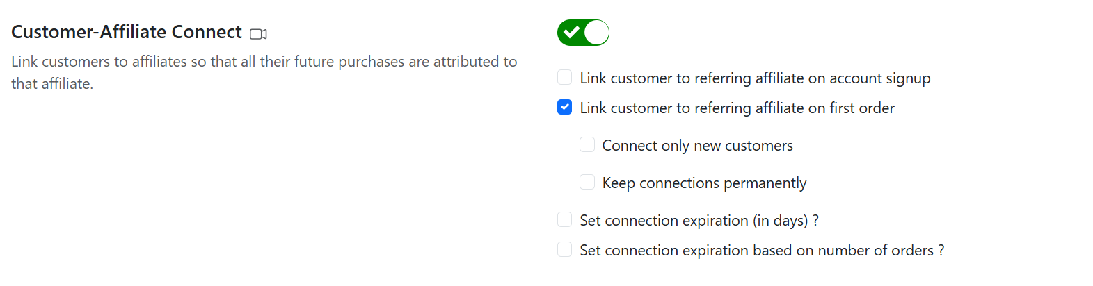 <figure><img src="https://1200686697-files.gitbook.io/~/files/v0/b/gitbook-x-prod.appspot.com/o/spaces%2F-LdPzLtyP46oY7cyXnkw%2Fuploads%2FIEAS1eBpU0hmiD1OirWK%2FScreenshot%202026-03-25%20214046.png?alt=media&#x26;token=c86f78d0-adc8-48c3-aa18-19bb875b6812" alt=""><figcaption><p>Enable the "Link customer to referring affiliate on first order" option</p></figcaption></figure>