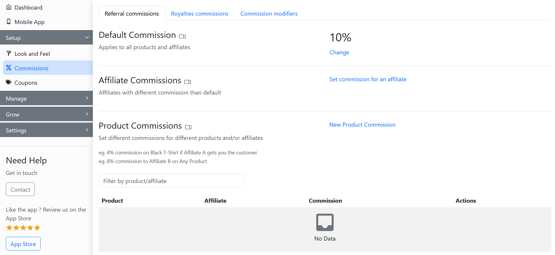 To set collection commissions for affiliates, go to the **Referral commissions** section in the **Commissions** tab of the GoAffPro admin panel.&#x20;