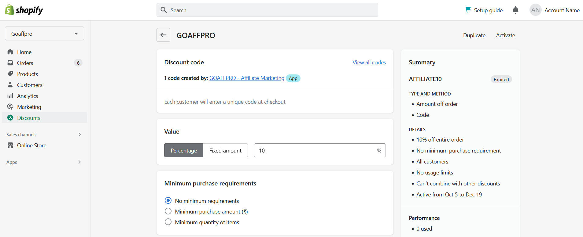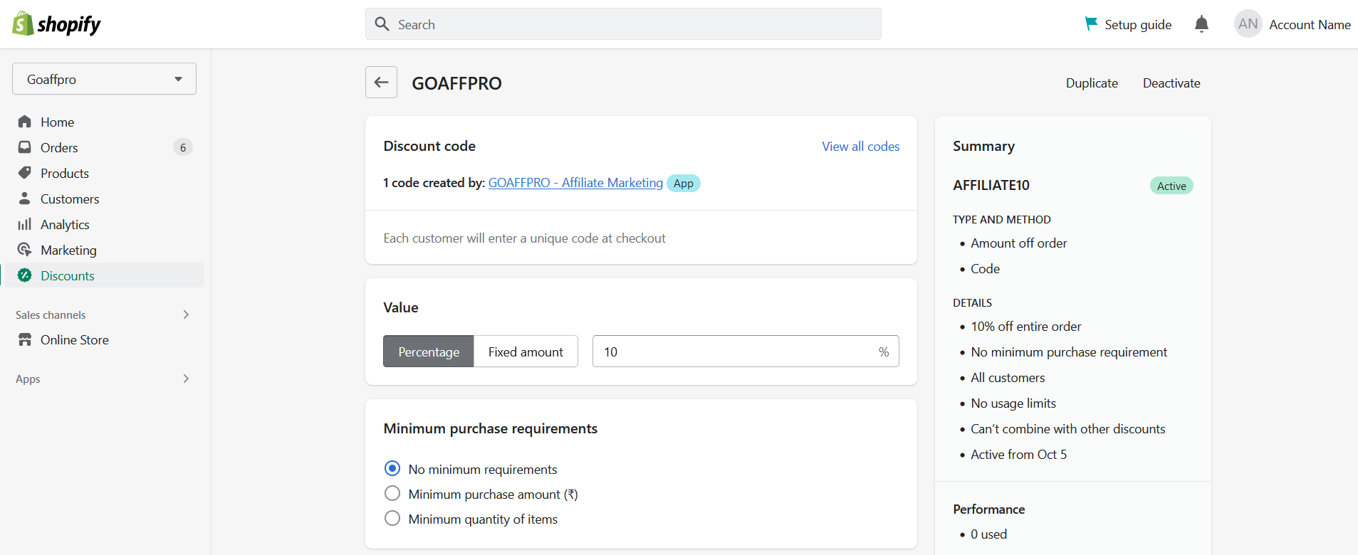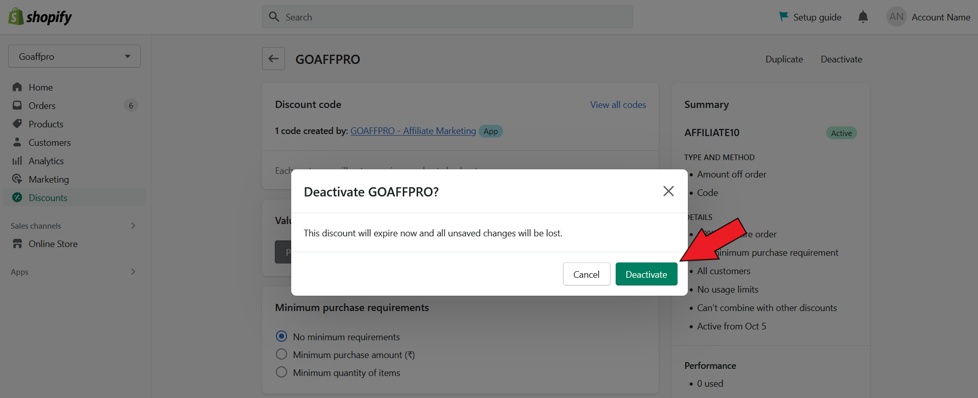 Finally, all the coupon codes created by the GoAffPro app will become inactive.