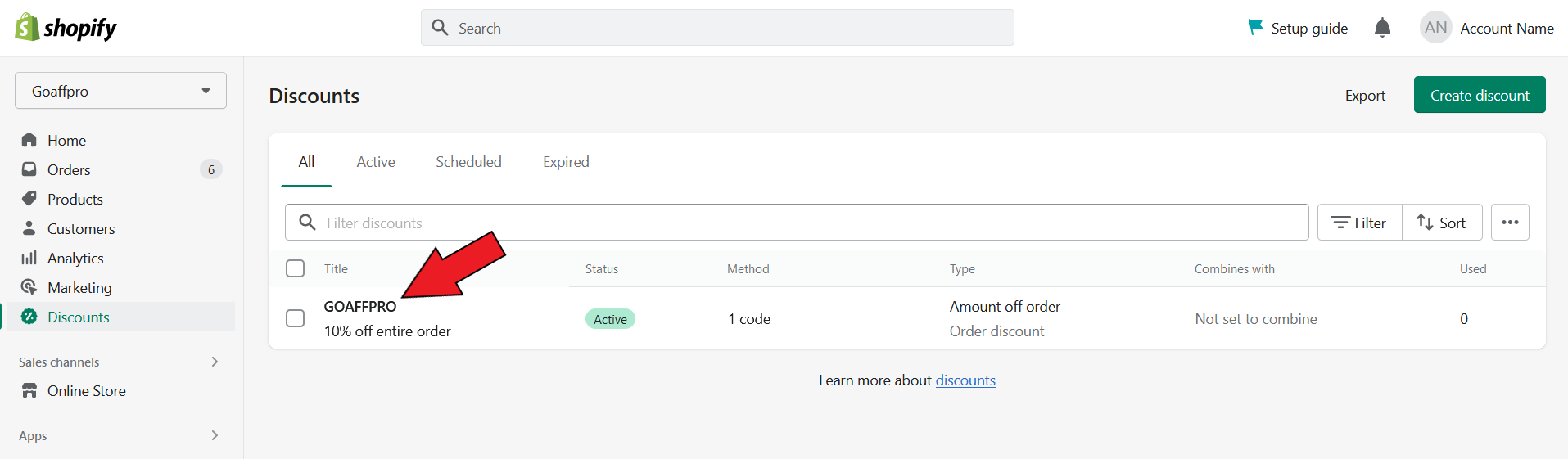 To disable coupons that are assigned to the affiliates, go to the Discounts section in the Shopify dashboard panel.
