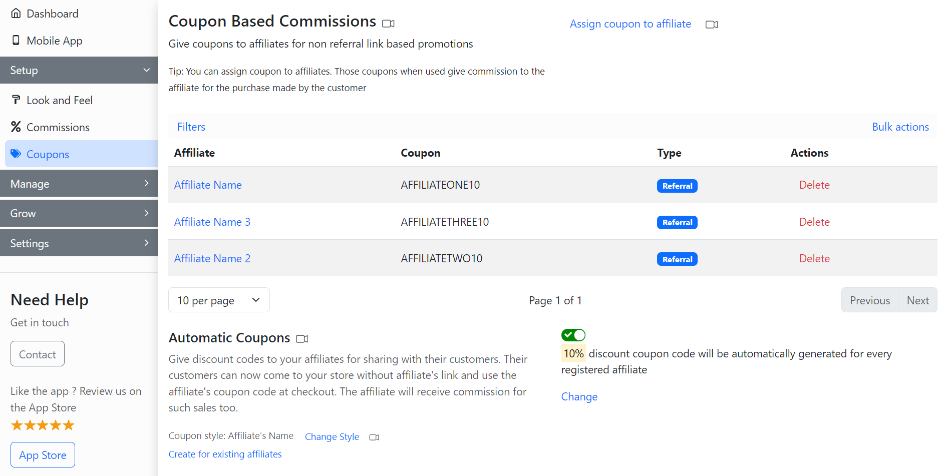 **GoAffPro** provides you with the option to bulk delete coupons.