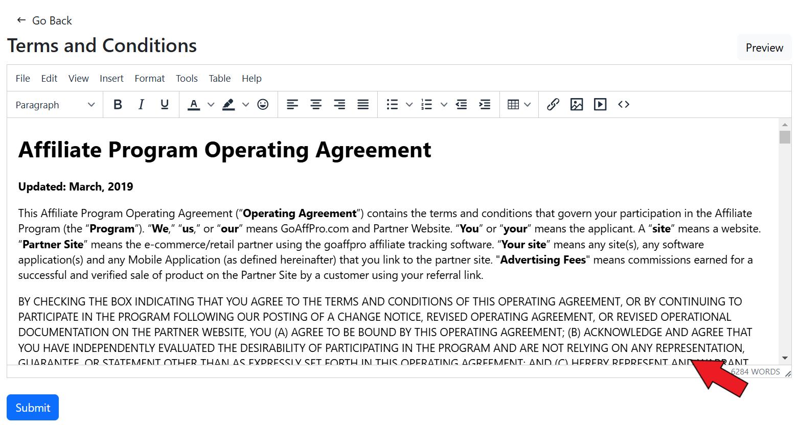 **GoAffPro** provides you with the option to set up and edit the legal documents.&#x20;