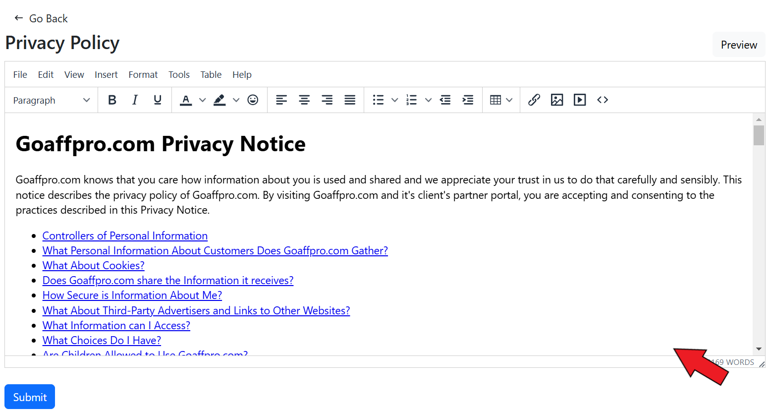 Here, you can edit the privacy policy page and click on **Save**.