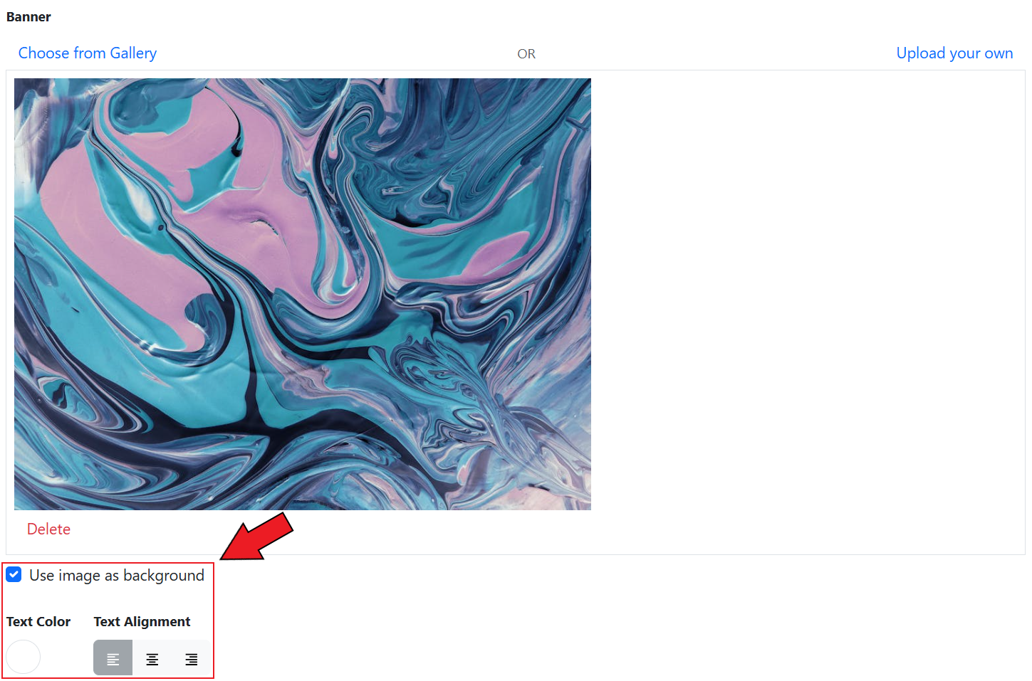 You also have the option to use the banner image as the background and set the text color and alignment.&#x20;