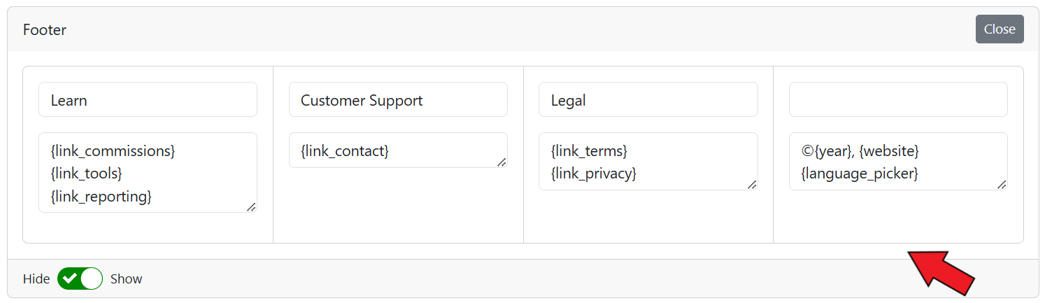 {% content-ref url="advanced-customization/add-links-to-footer-of-affiliate-portal" %}