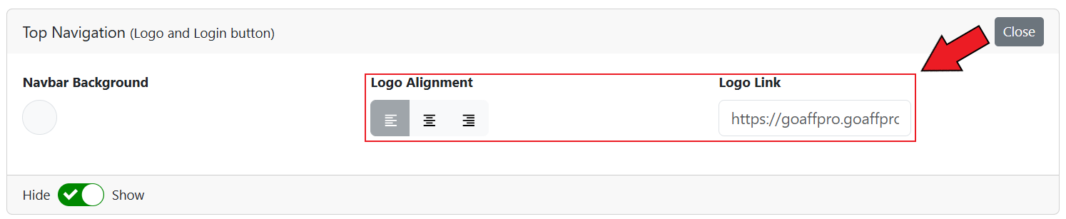 <figure><img src="https://1200686697-files.gitbook.io/~/files/v0/b/gitbook-x-prod.appspot.com/o/spaces%2F-LdPzLtyP46oY7cyXnkw%2Fuploads%2FxEFcZt10jhz2chc34QwI%2FScreenshot%202024-10-28%20172811.png?alt=media&#x26;token=6f31e941-62d9-4aeb-97a5-d1d1d4fa4500" alt=""><figcaption><p>Logo Alignment &#x26; Link</p></figcaption></figure>