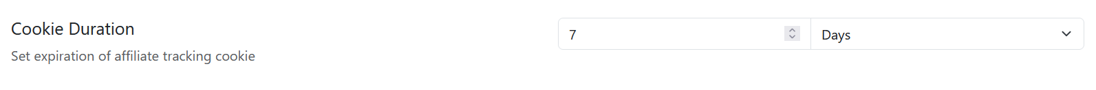 You can set the cookie duration by going to Settings > General > Cookie Duration section. There, you can set the expiration date for the affiliate tracking cookie.