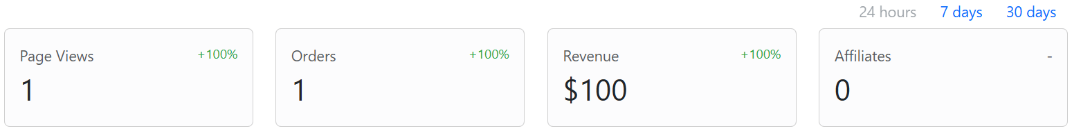 * **Affiliates:** This shows you the number of affiliates that are enrolled in your affiliate program.