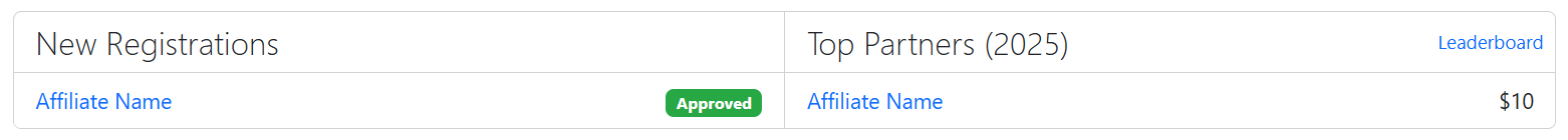 <figure><img src="https://1200686697-files.gitbook.io/~/files/v0/b/gitbook-x-prod.appspot.com/o/spaces%2F-LdPzLtyP46oY7cyXnkw%2Fuploads%2FVajjf9LaKhtW2ZNEuX6f%2Fimage.png?alt=media&#x26;token=e60dc7b2-3839-4e5b-9470-f4b654053d03" alt=""><figcaption><p>New Registrations &#x26; Top Partners</p></figcaption></figure>