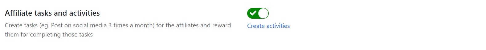 Affiliate tasks and activities option allows you to create tasks for your affiliates. Affiliates can complete these tasks and log them on their end. You can accordingly reward them for their completed tasks.