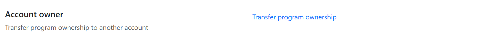 The **Account owner** section allows you to transfer the ownership of the program to another account by changing the email address.&#x20;