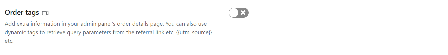 The **Order tags** feature allows you to add extra information to your admin panel's order details page. You can also use dynamic tags to retrieve query parameters.