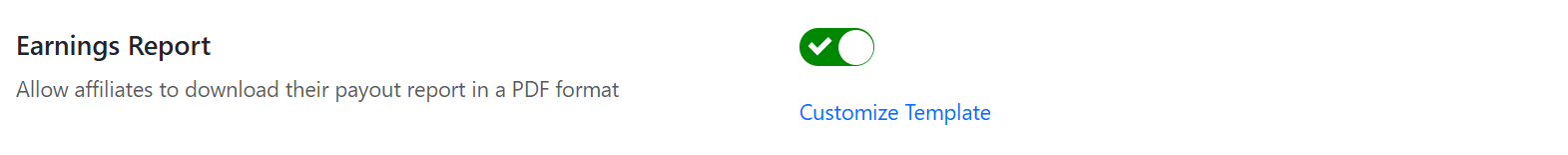 Enable affiliates to download a [payout earnings report](https://docs.goaffpro.com/program-settings/extra-settings/earnings-report-for-affiliates) from their dashboard in a PDF format. It also lets you customize the earnings report template.&#x20;