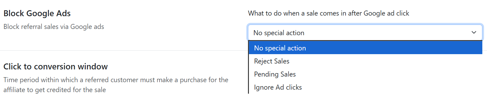 The [Block Google Ads](https://docs.goaffpro.com/program-settings/advanced-settings/block-commission-from-google-ads) feature has been updated. It now lets you set sales made through Google ad clicks to a pending sale status or to ignore ad clicks.&#x20;