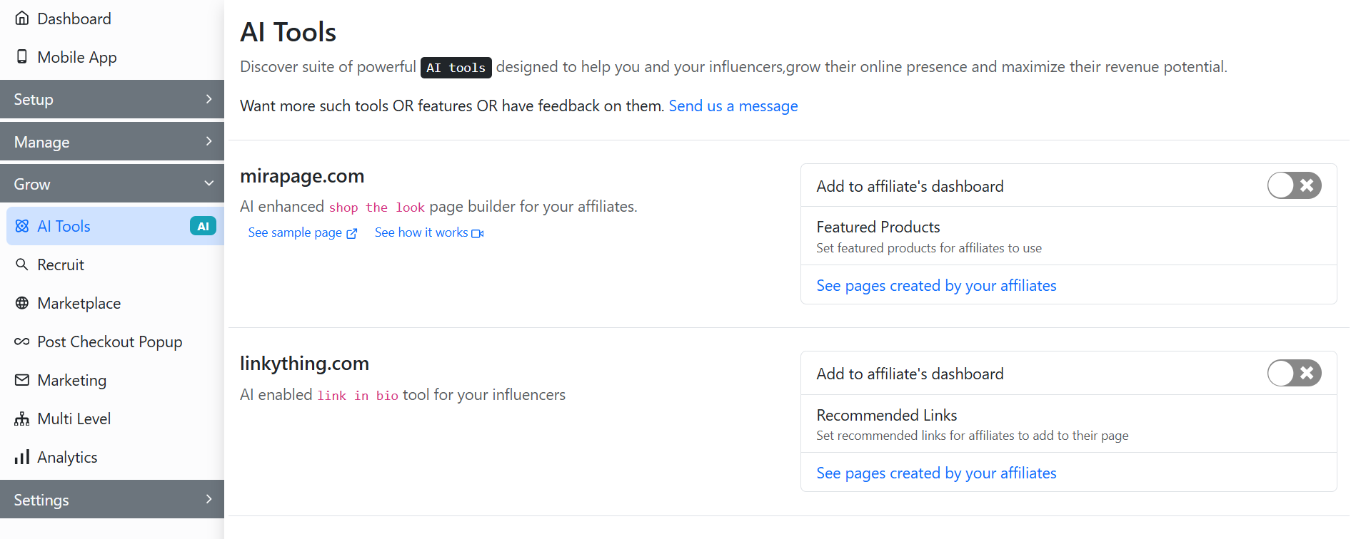 You can enable them from the AI Tools tab for your affiliates.&#x20;