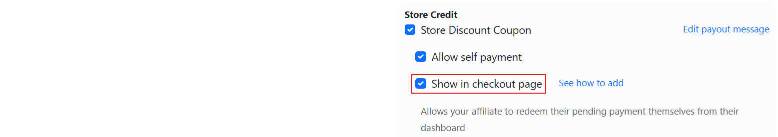 Allows your affiliates to redeem their pending payment as store credits at the store checkout.