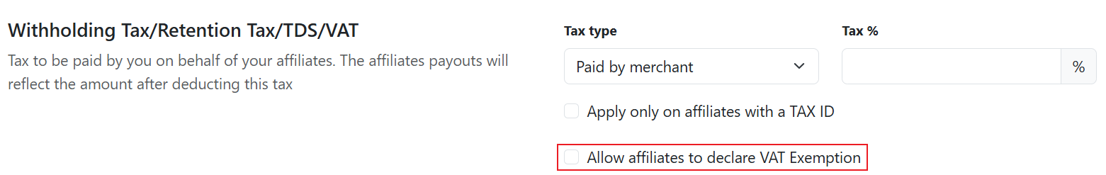 Allow affiliates to declare VAT exemption on their commission payouts.