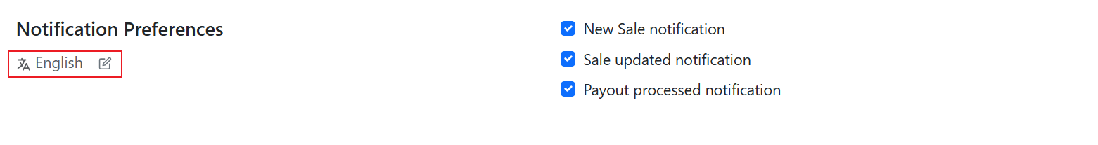Preferred language option has been added to the affiliate's notification preferences, ensuring that email notifications are sent to the affiliate in this language.