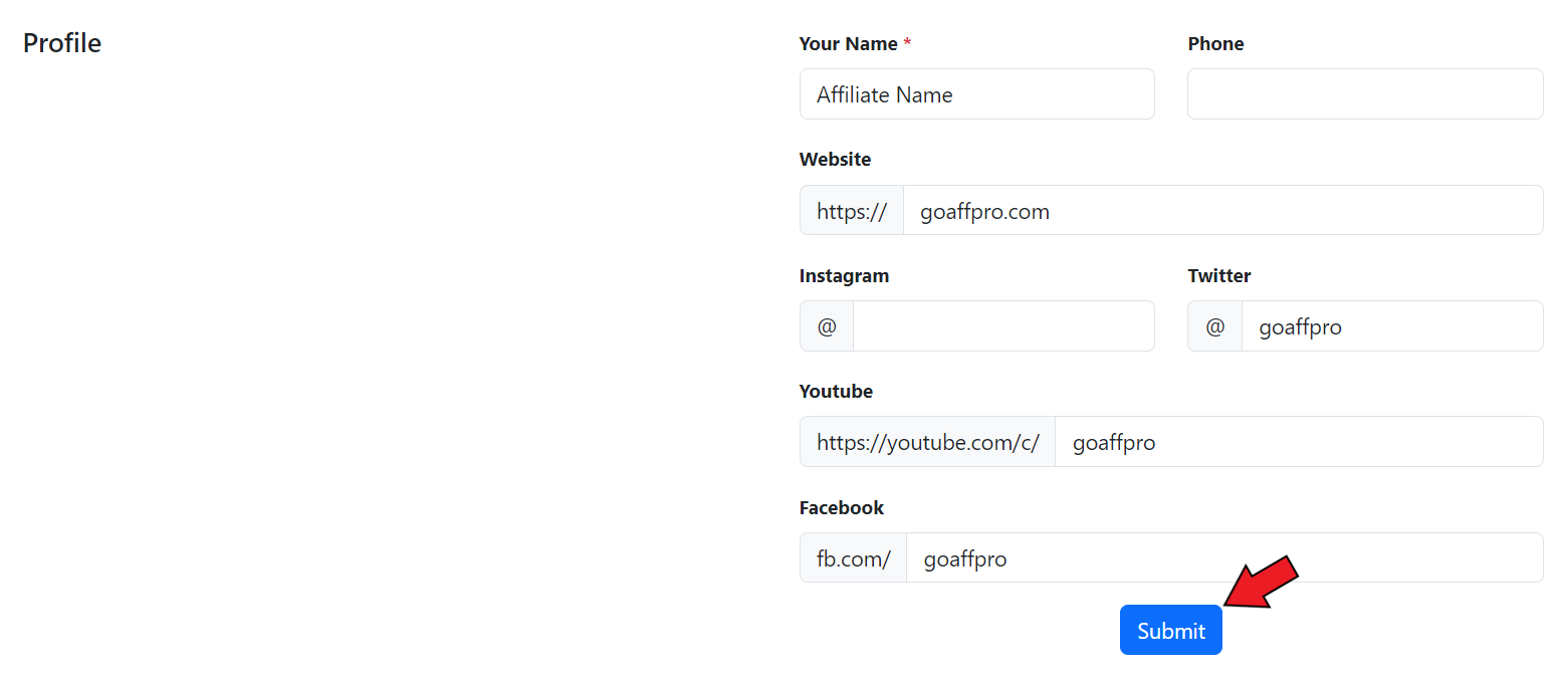 **GoAffPro** provides you with the option to change an affiliate's profile information.