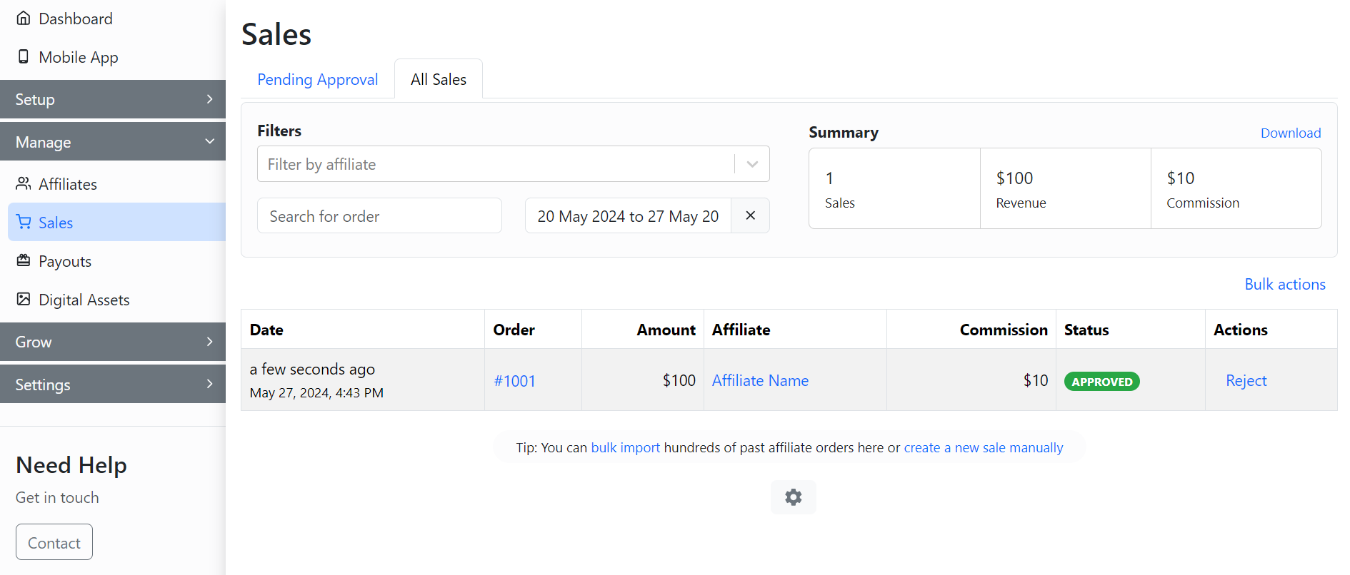 **GoAffPro** provides you with the option to customize the All Sales table.