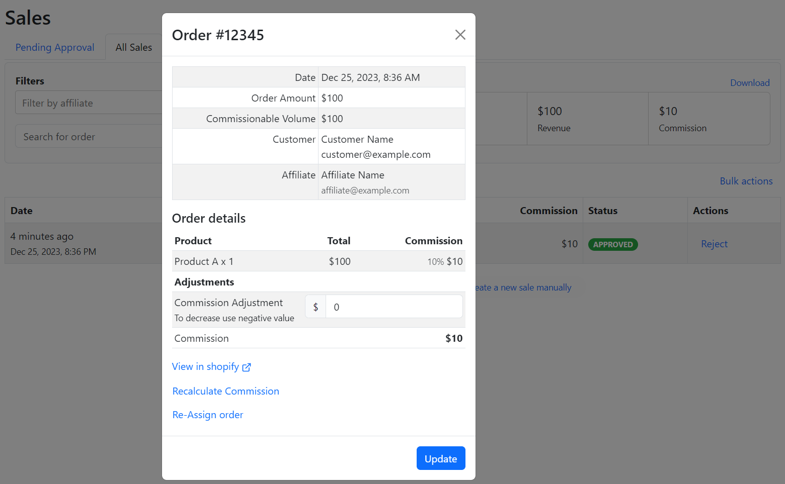 **GoAffPro** provides you with the option to recalculate commission on sales.