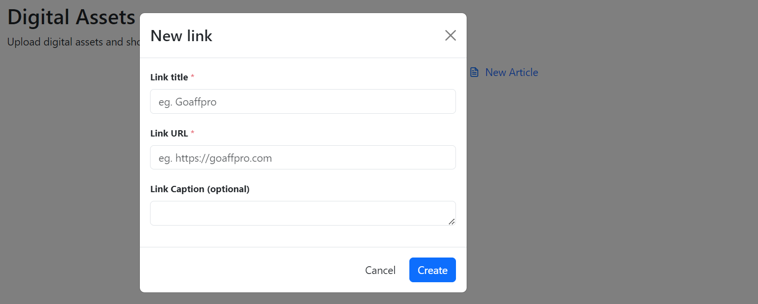 **GoAffPro** provides you with the option to add link assets for affiliates.
