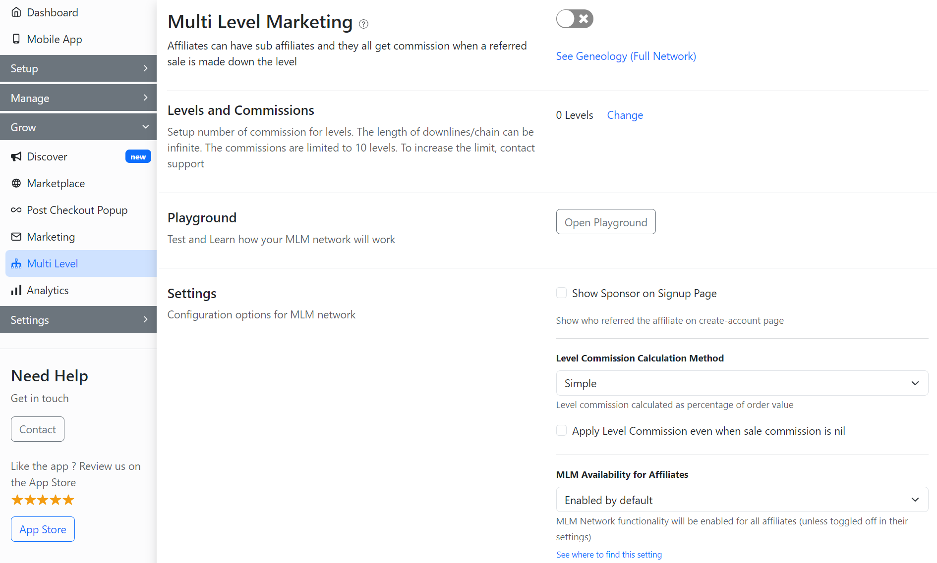 Here, enable the Multi Level Marketing toggle.