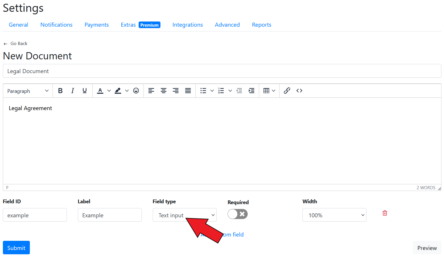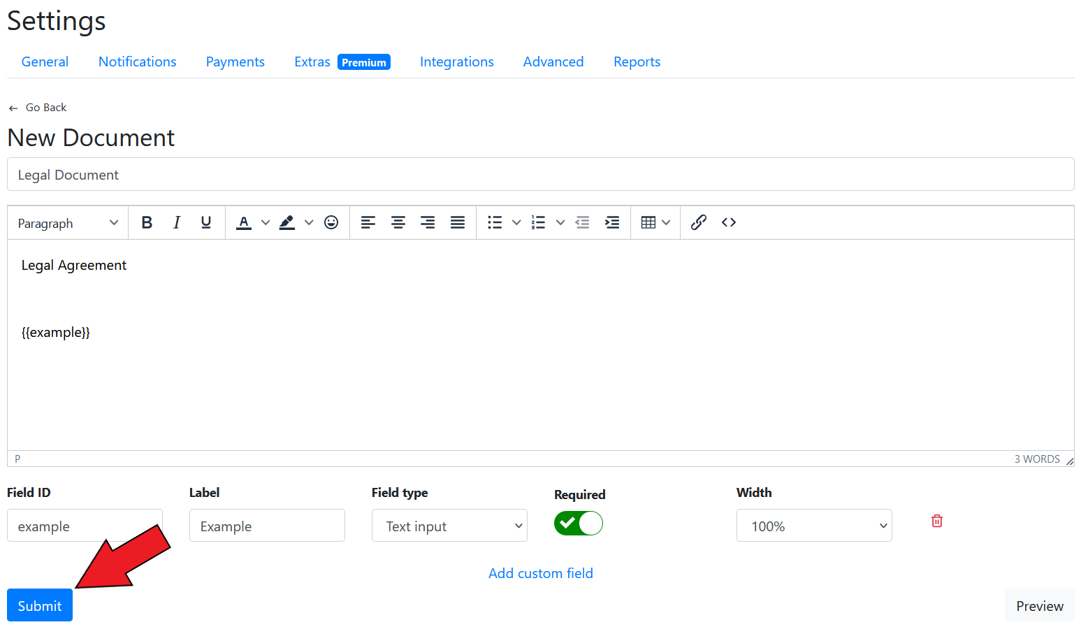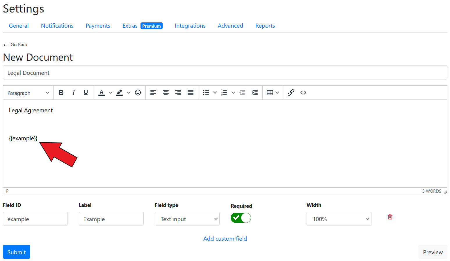 GoAffPro provides you with the option to add custom fields to the legal document.