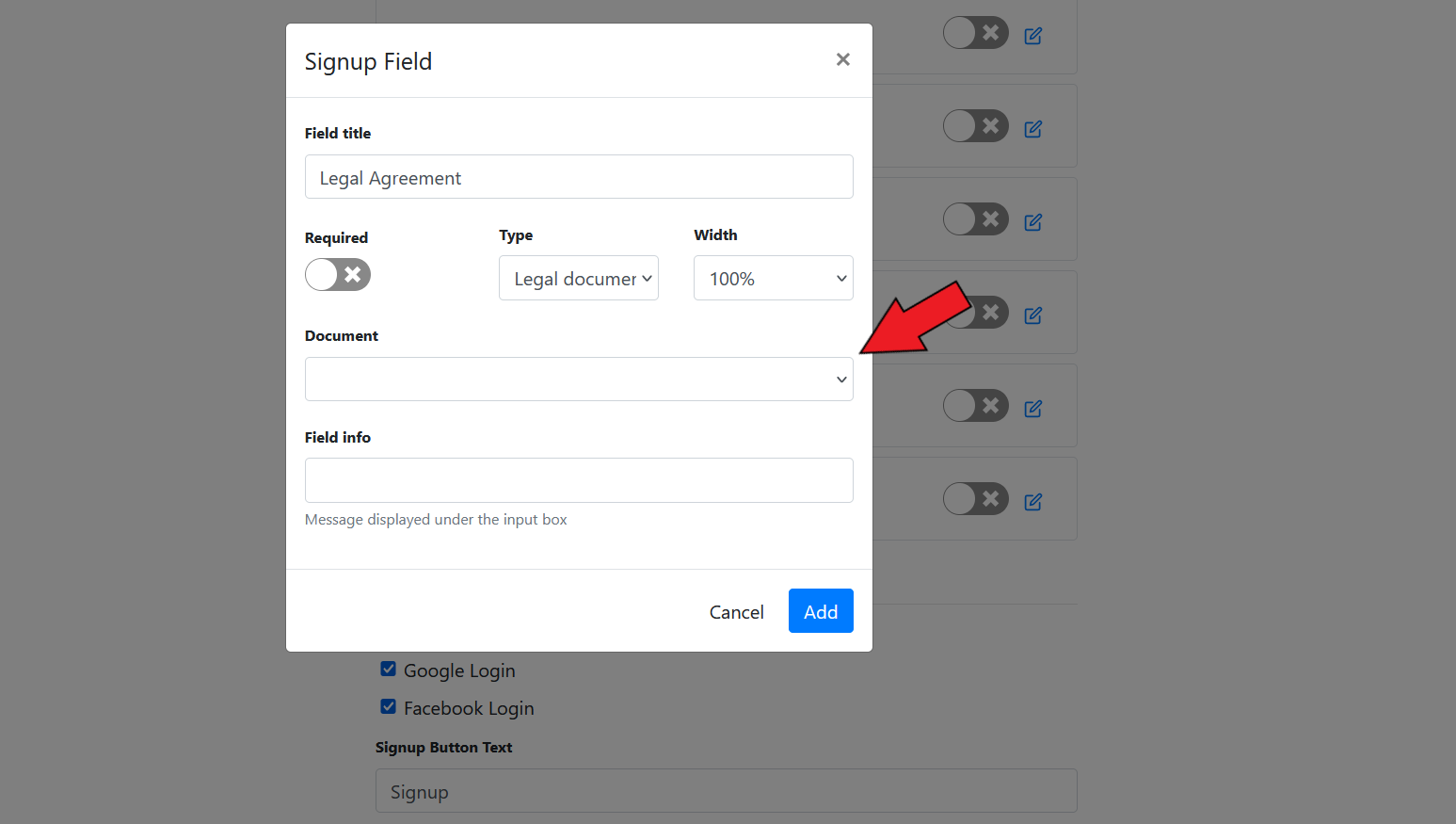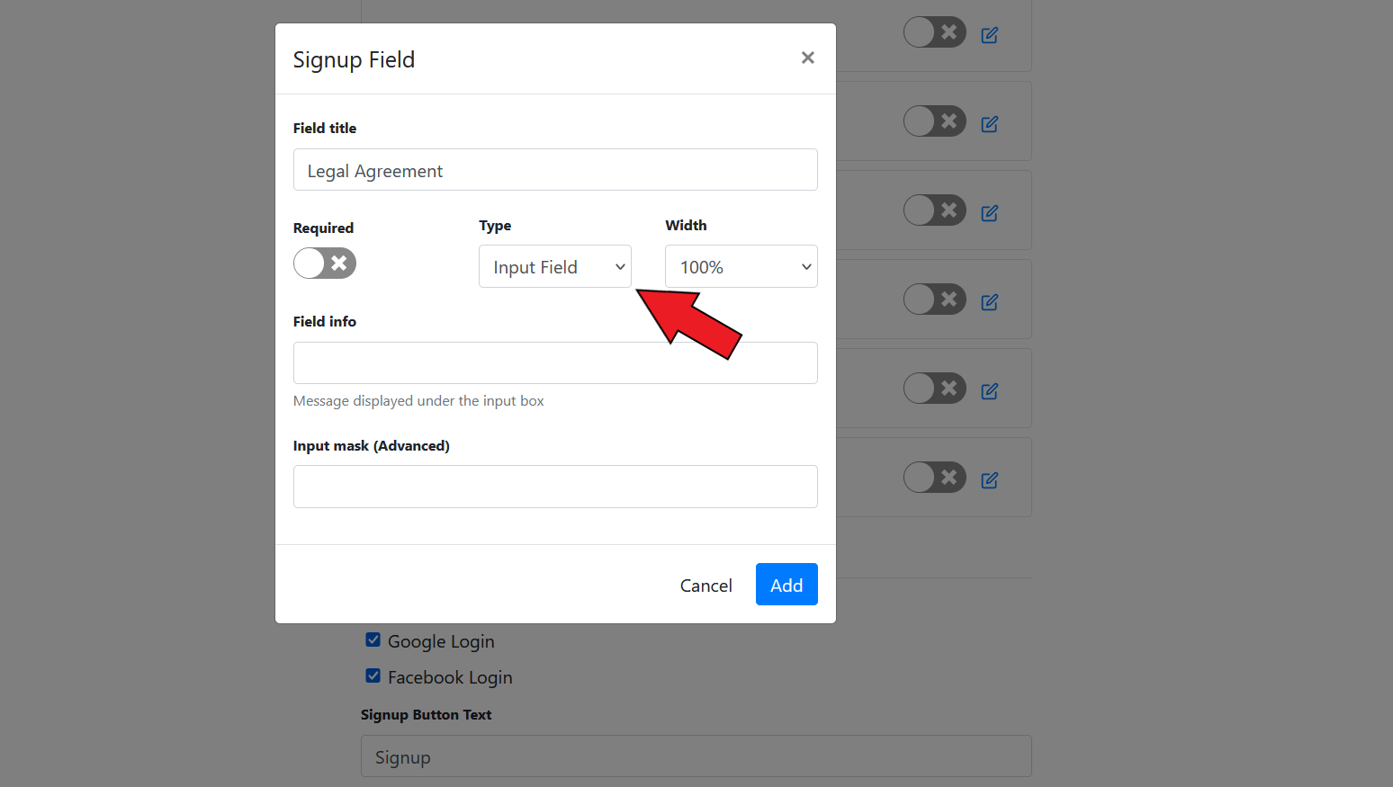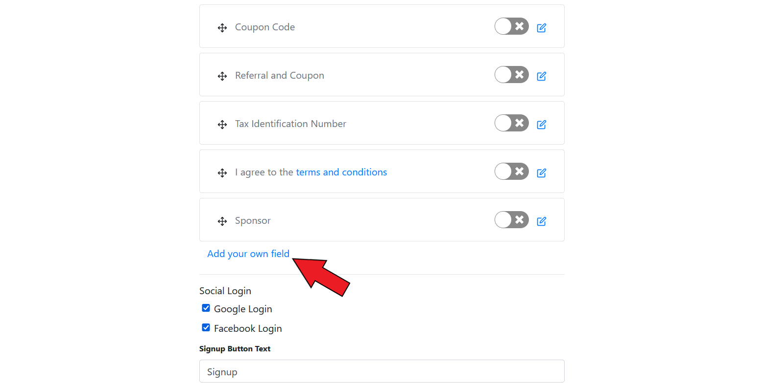#### Add Signup Field&#x20;