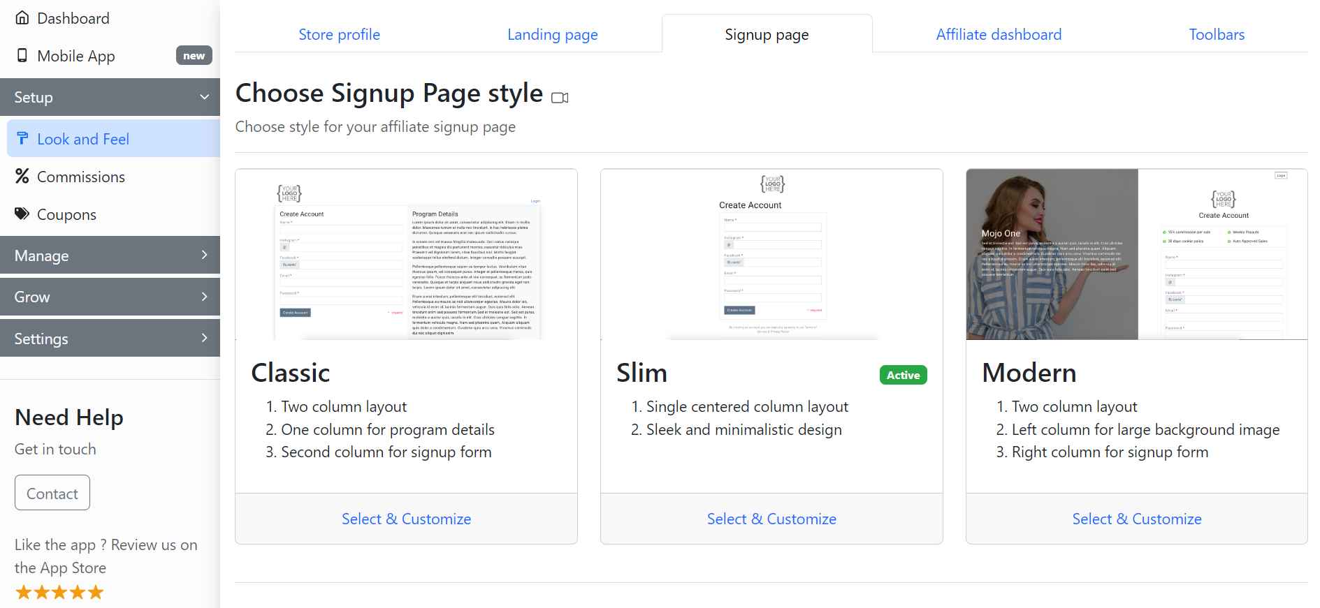 Now, go to the **Signup page** section in the **Look and Feel** tab of the GoAffPro admin panel