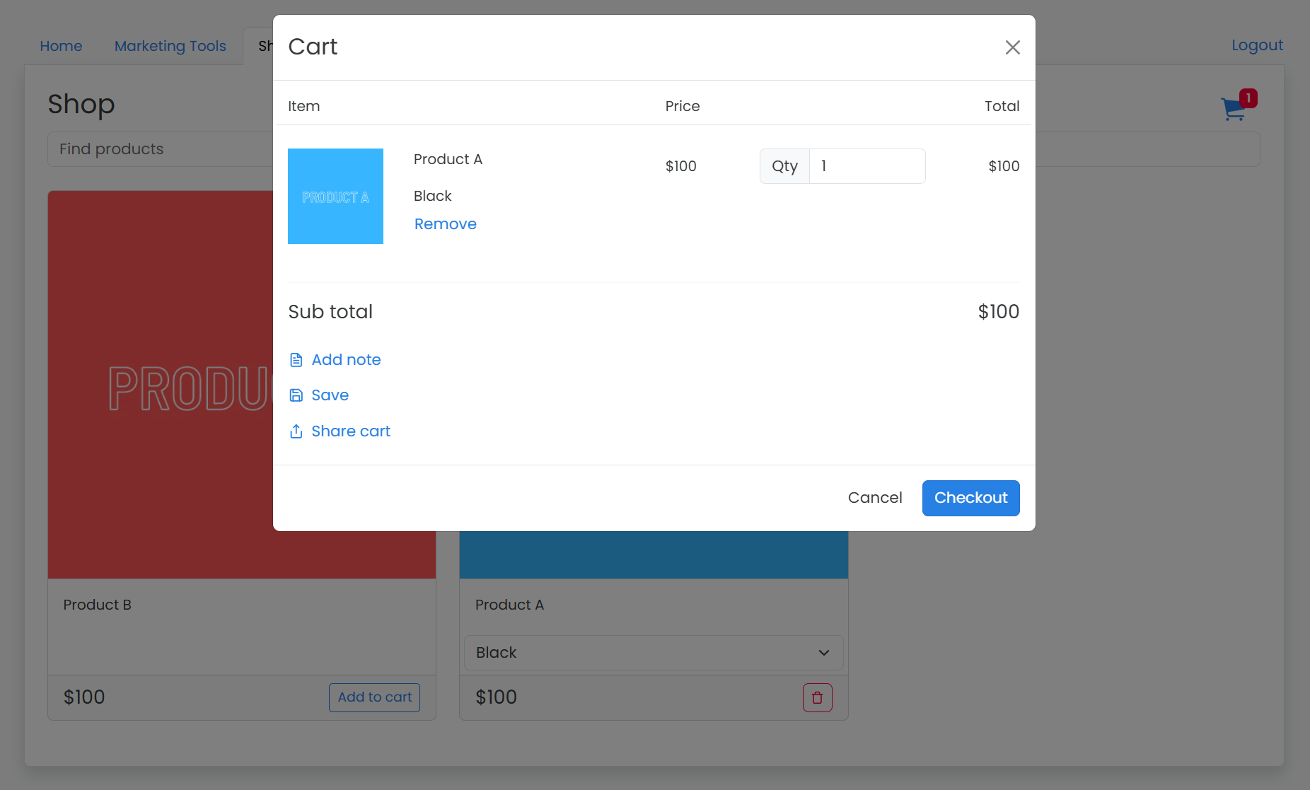 Affiliates have the option to share the cart link or the checkout link. They also have the option to save the cart.&#x20;