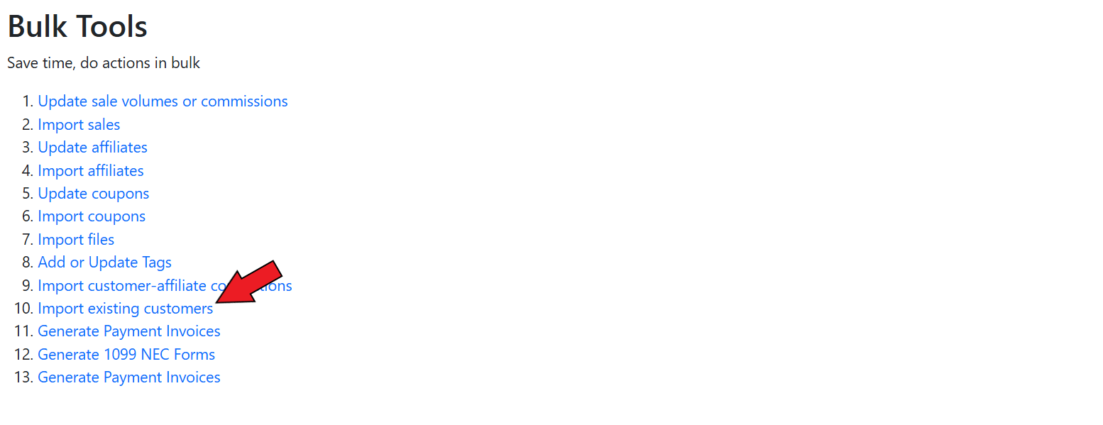 To use bulk tools, go to the **Bulk Tools** tab in the GoAffPro admin panel.&#x20;