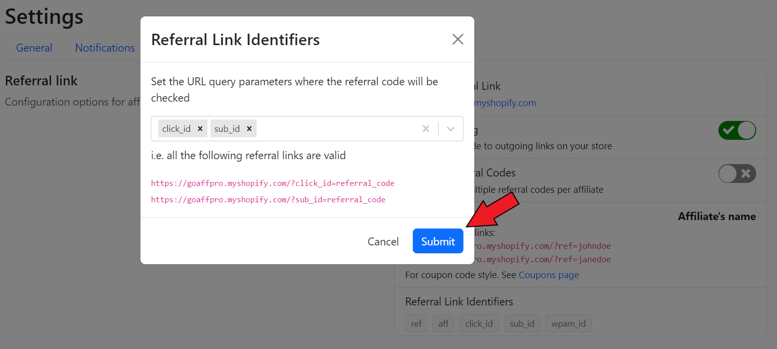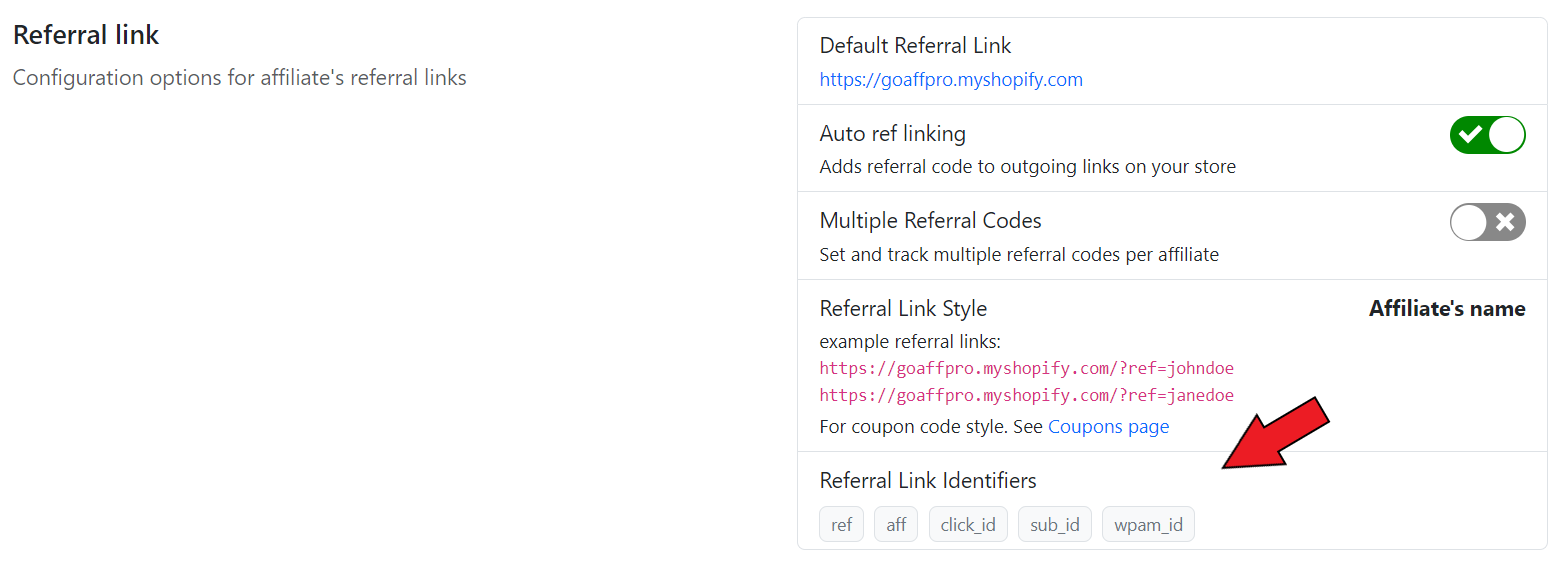 **GoAffPro** provides you with the option to set up the referral link identifiers for affiliate referral links.